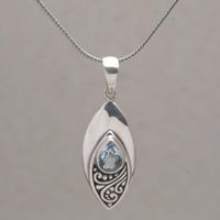 Sterling Silver Pendant Necklace with Blue Topaz 'I'll Be Seeing You' Item ID: 2671733061