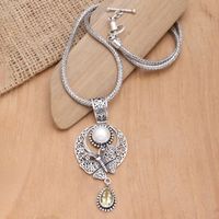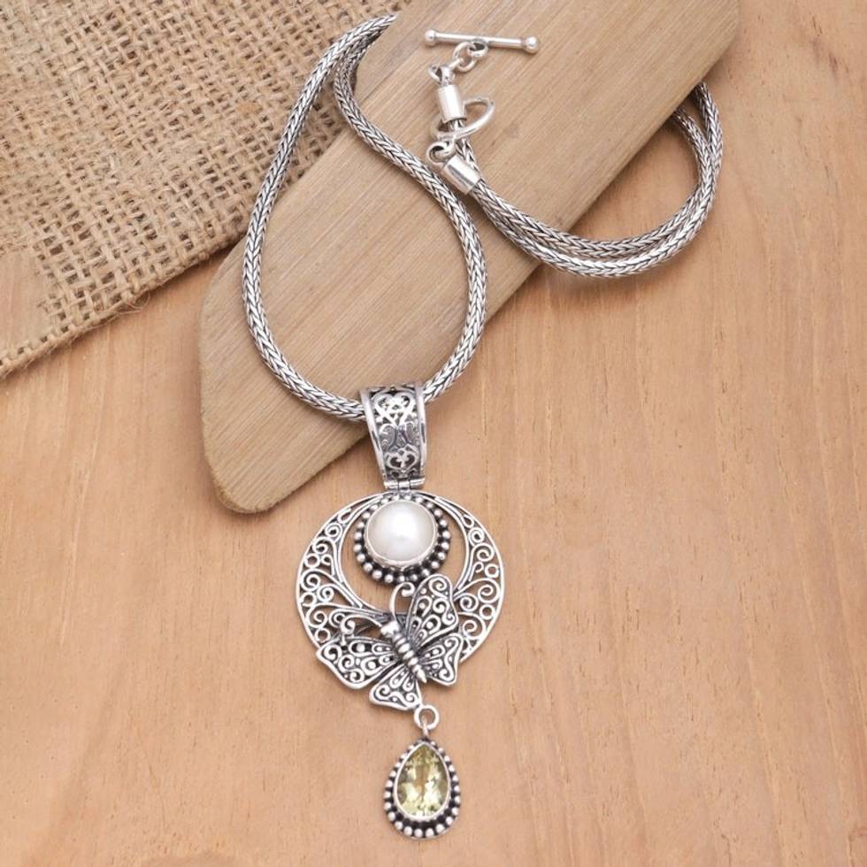 Sterling Silver Pendant Necklace with Citrine and Pearl 'Yellow Butterfly Teardrop' Item ID: 2671747861