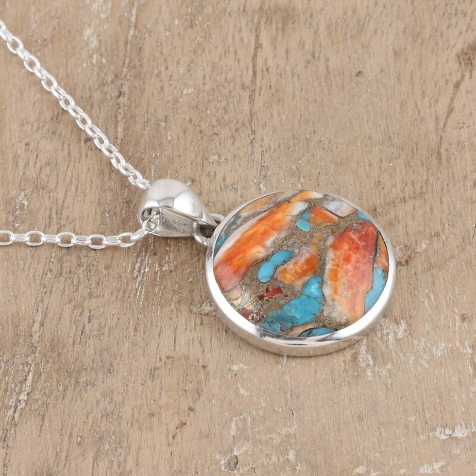 Sterling Silver Pendant Necklace with Composite Turquoise 'Sunset at the Island' Item ID: 2669924411