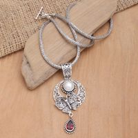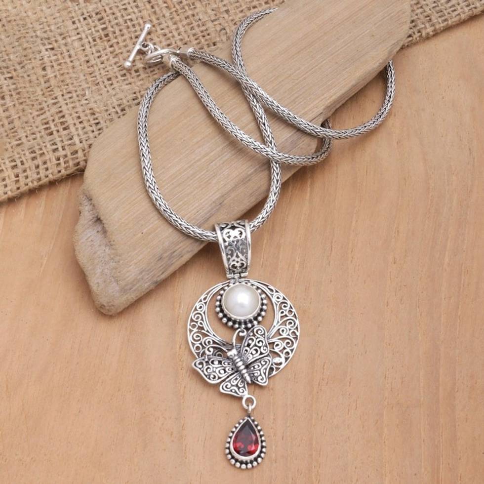 Sterling Silver Pendant Necklace with Garnet and Pearl 'Red Butterfly Teardrop' Item ID: 2671747866