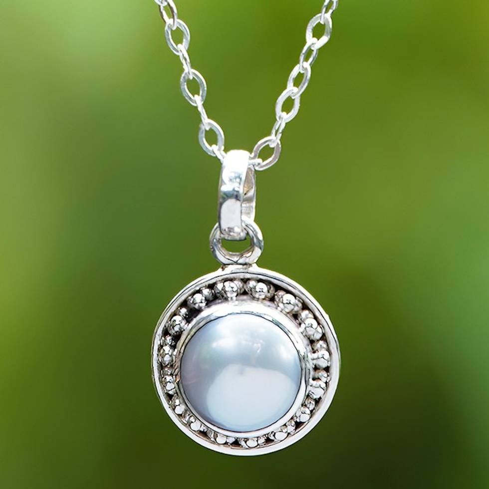 Sterling Silver Pendant Necklace with Grey Cultured Pearl 'Lovely Grey' Item ID: 2671821118