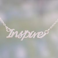 Sterling Silver Pendant Necklace with Inspire Charm 'Dare to Inspire' Item ID: 2671793195