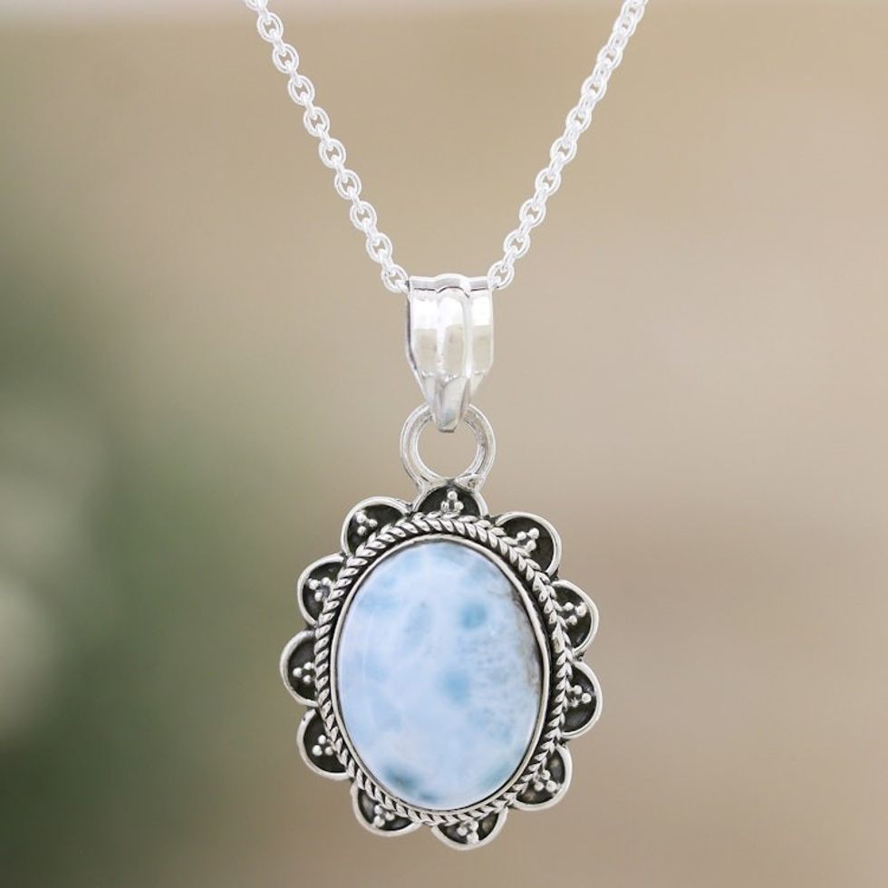 Sterling Silver Pendant Necklace with Larimar Gemstone 'Peace Maiden' Item ID: 2671786724