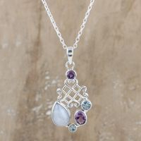 Sterling Silver Pendant Necklace with Multiple Gemstones 'Blue Realm' Item ID: 2671786507