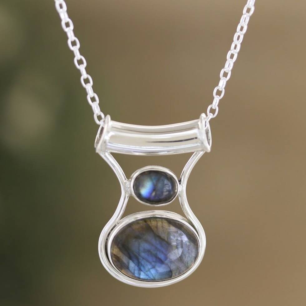 Sterling Silver Pendant Necklace with Natural Labradorite 'Simply Serene' Item ID: 2671624595