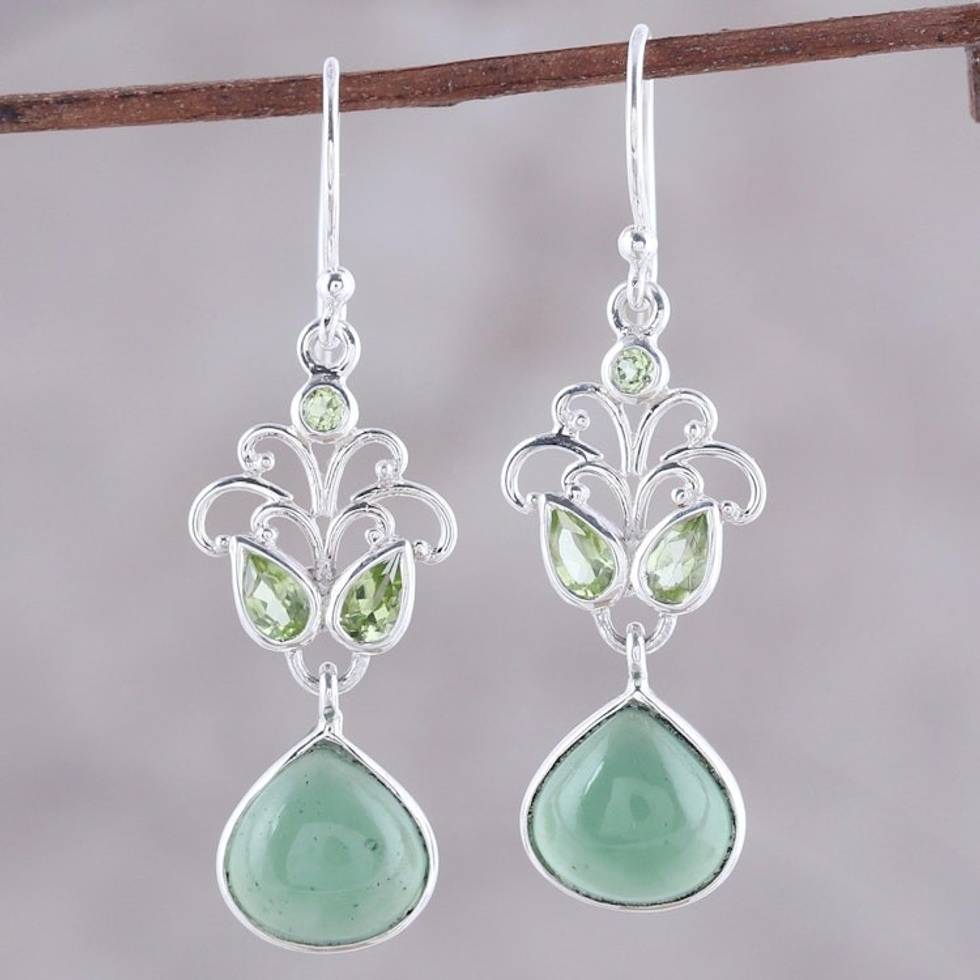 Sterling Silver Peridot and Serpentine Dangle Earrings 'Evening Delight' Item ID: 2671792298
