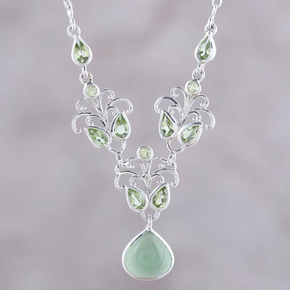 Sterling Silver Peridot and Serpentine Pendant Necklace 'Evening Delight' Item ID: 2671620018