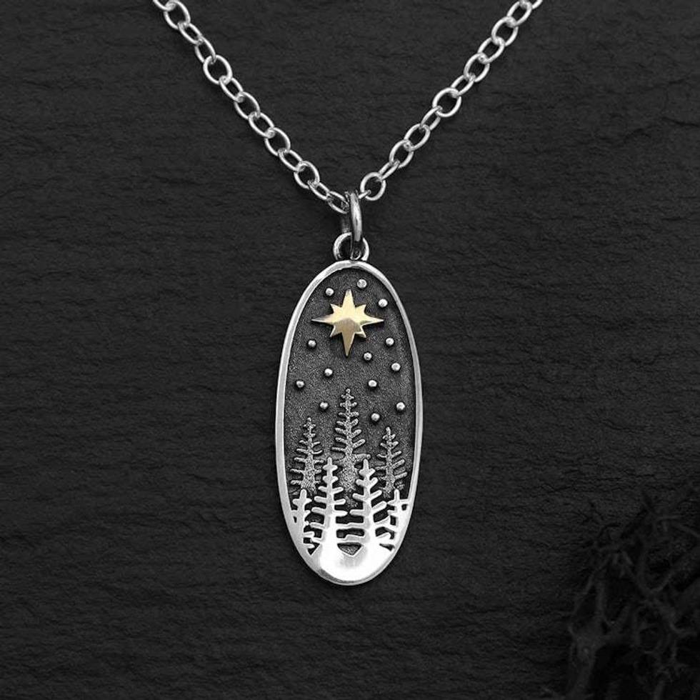 Sterling Silver Pine Tree Necklace with Bronze Star Item ID: 2674383690