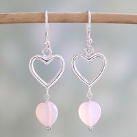 Sterling Silver Pink Onyx Heart Dangle Earrings from India 'Romance Hearts in Pink' Item ID: 2671791776