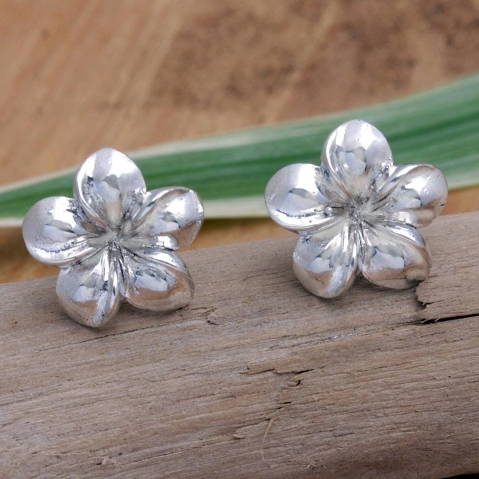 "Plumeria or frangipani is a beautiful flower native to tropical Latin America and the Caribbean. It becomes the most wonderful pair of drop earrings in this sophisticated design by Balinese artisan Karang Adiguna crafted from gleaming sterling silver and destined to become one of your favorite pieces of jewelry."