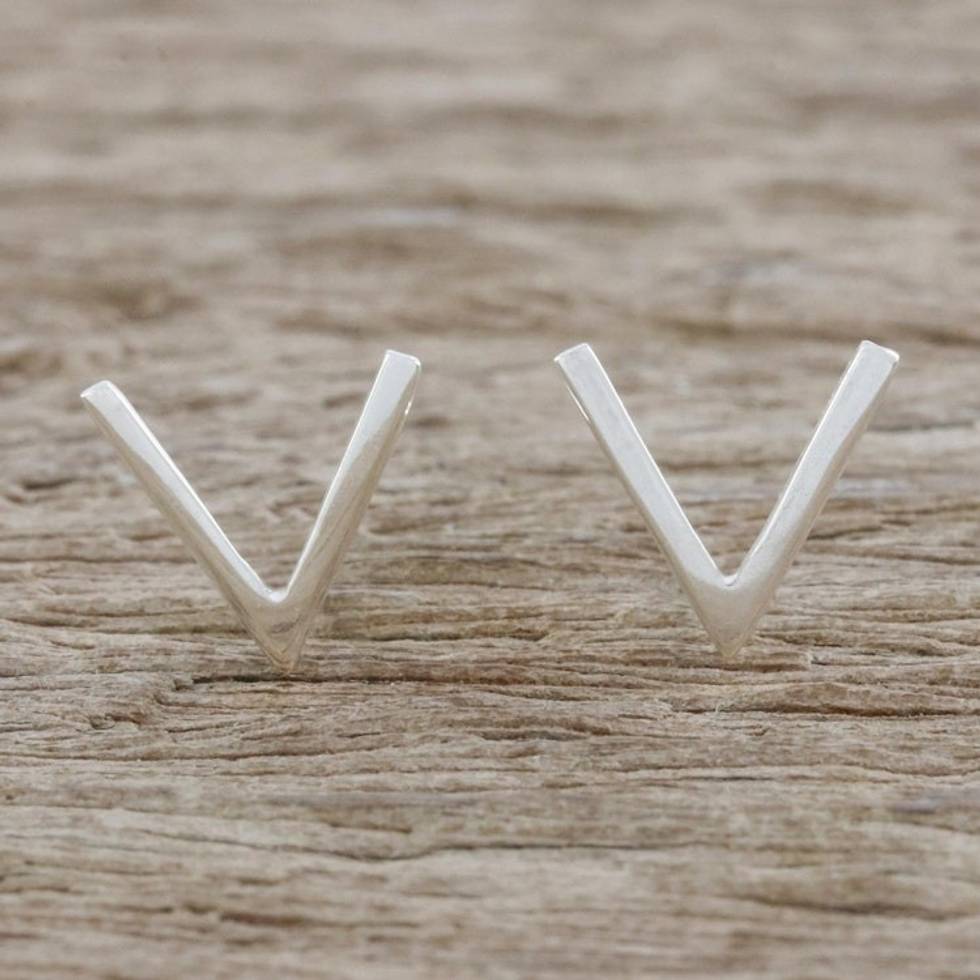 Sterling Silver Pointed Post Earrings from Thailand 'Shimmering Mountains' Item ID: 2671800855