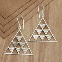 Sterling Silver Pyramid Dangle Earrings Crafted in Bali 'Beaded Pyramids' Item ID: 2671762952