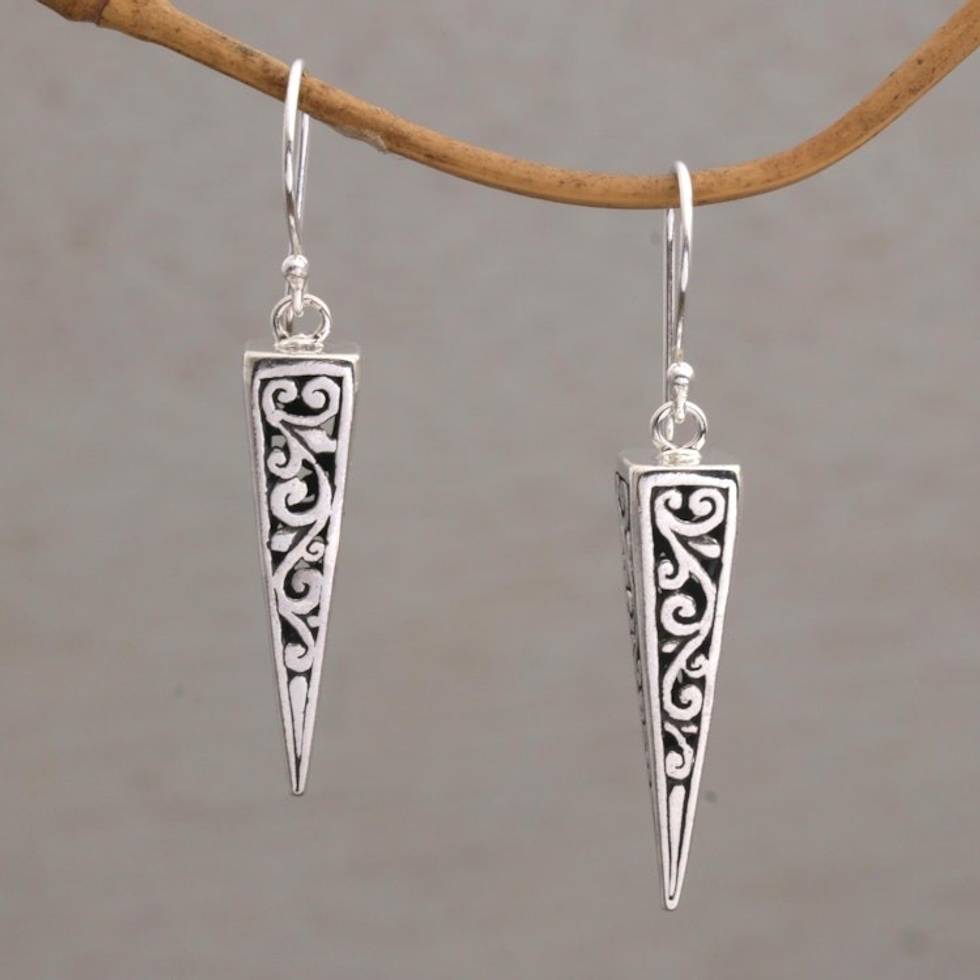 Sterling Silver Pyramid-Shaped Earrings from Bali 'Vine Pyramids' Item ID: 2671734174
