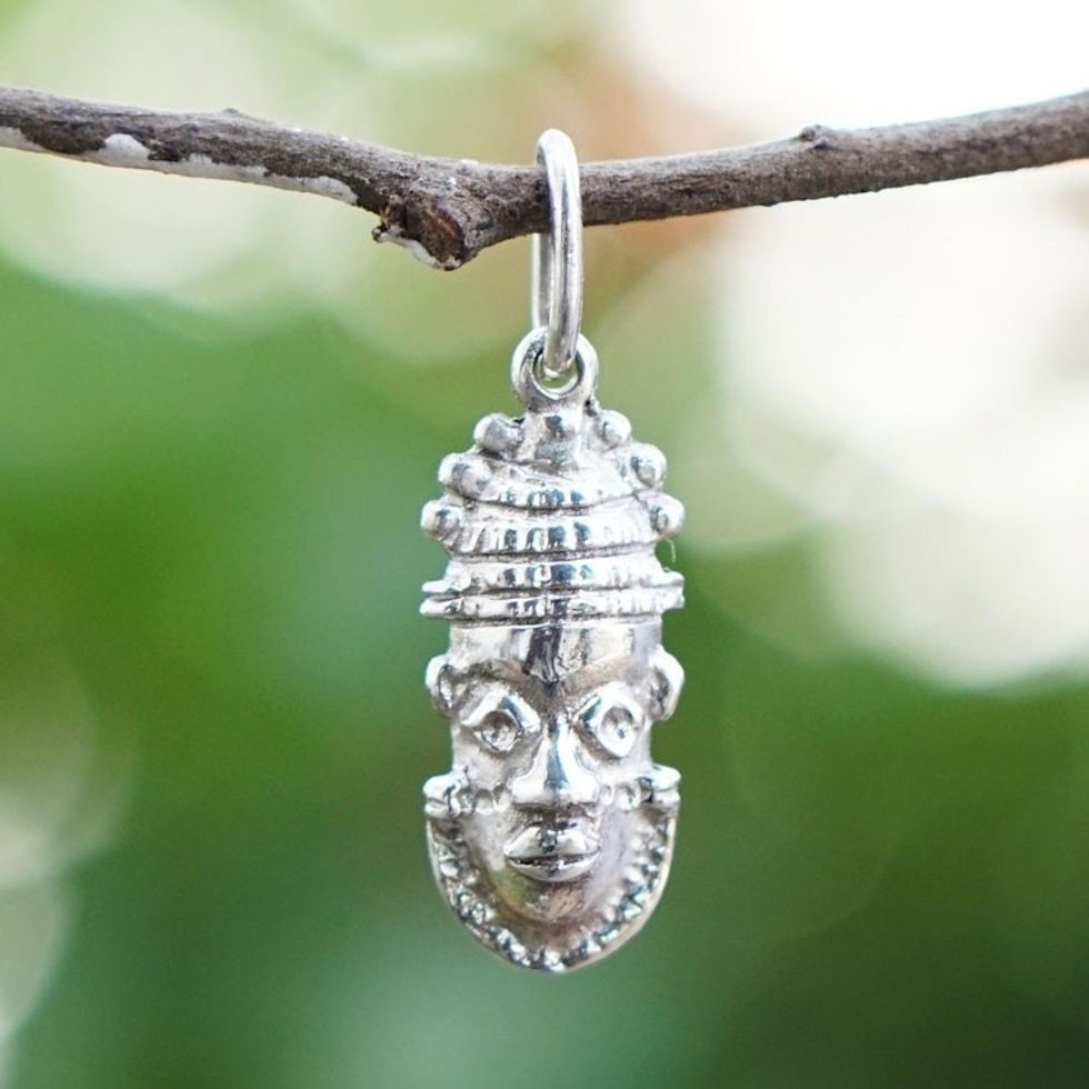 Sterling Silver Queen Idia Pendant from Ghana 'Queen Idia Mask' Item ID: 2671806259