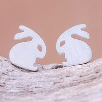 Sterling Silver Rabbit Stud Earrings from Thailand 'Cute Rabbits' Item ID: 2669927318
