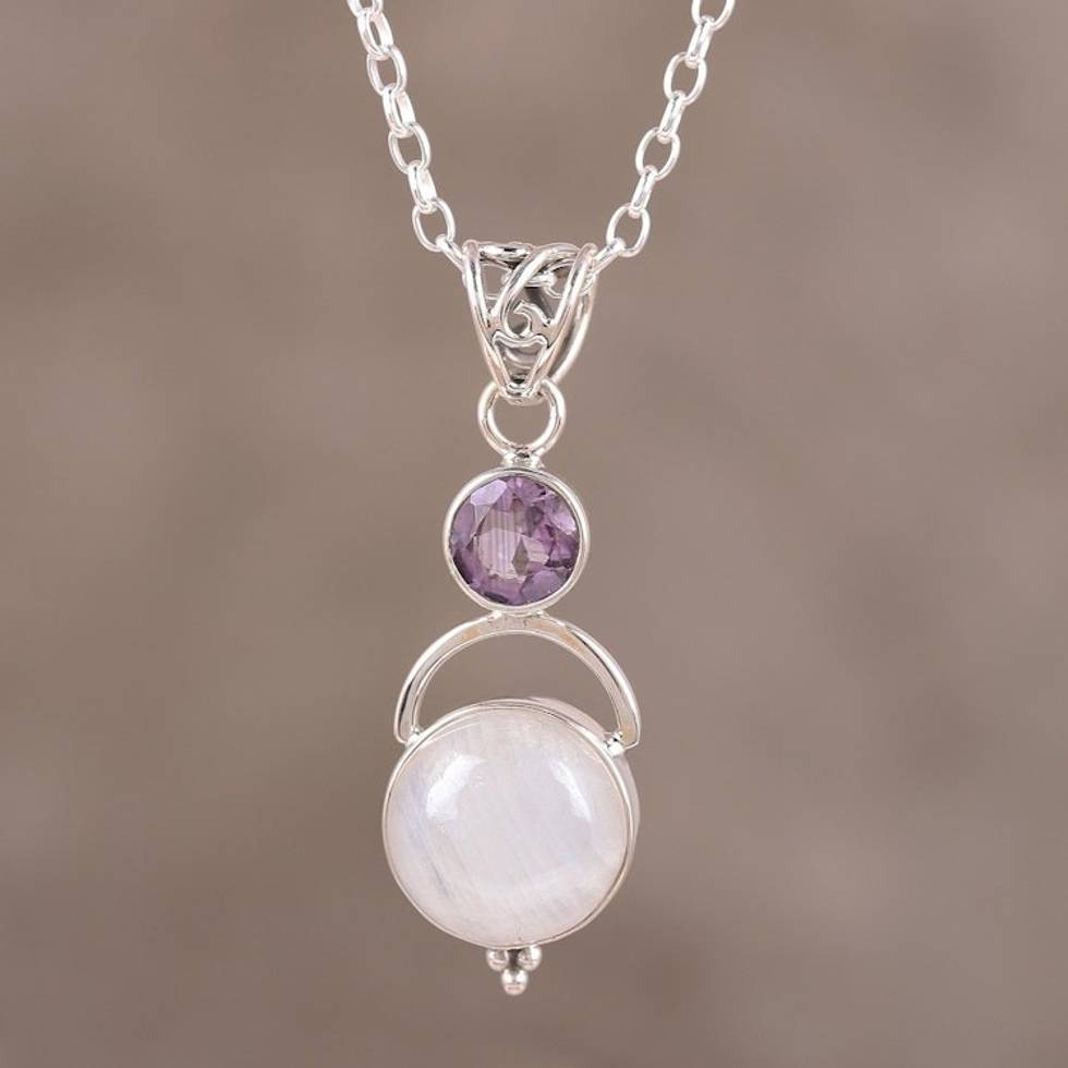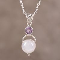 Sterling Silver Rainbow Moonstone Amethyst Pendant Necklace 'Alluring Serenity' Item ID: 2671790363