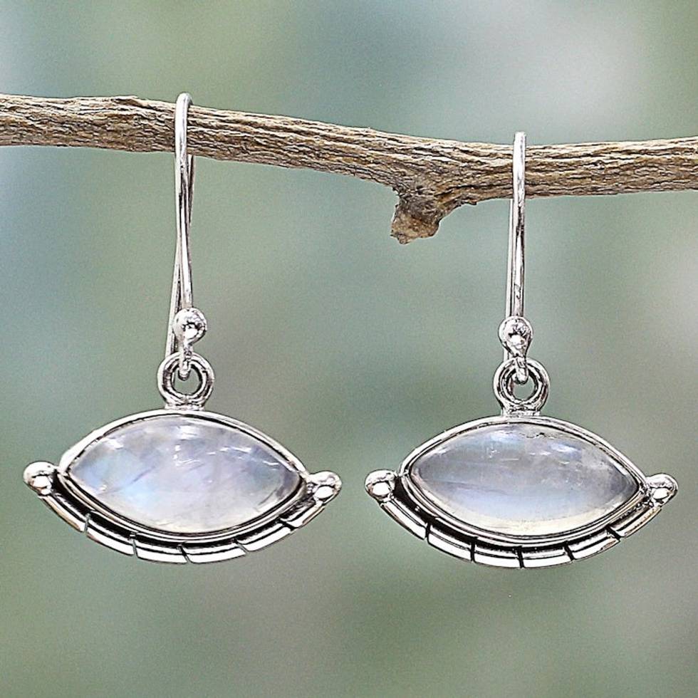 Sterling Silver Rainbow Moonstone Dangle Earrings from India 'Protective Eyes' Item ID: 2669925435