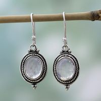 Sterling Silver Rainbow Moonstone Dangle Earrings India 'Moonlit Charm' Item ID: 2669925161