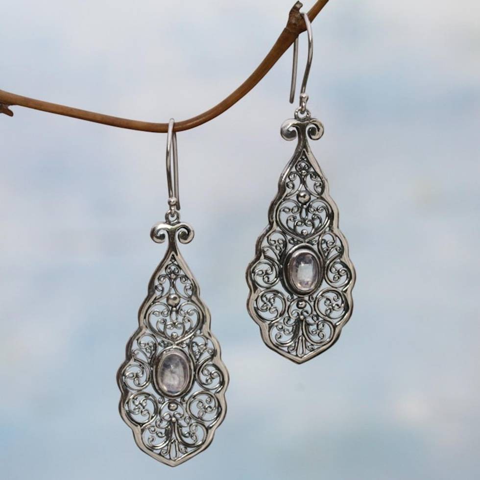 Sterling Silver Rainbow Moonstone Dangle Earrings Indonesia 'Mystical Portals' Item ID: 2669921889
