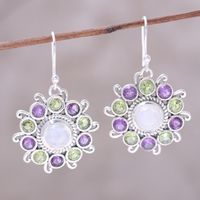 Sterling Silver Rainbow Moonstone Floral Dangle Earrings 'Goddess Blooms' Item ID: 2671618787