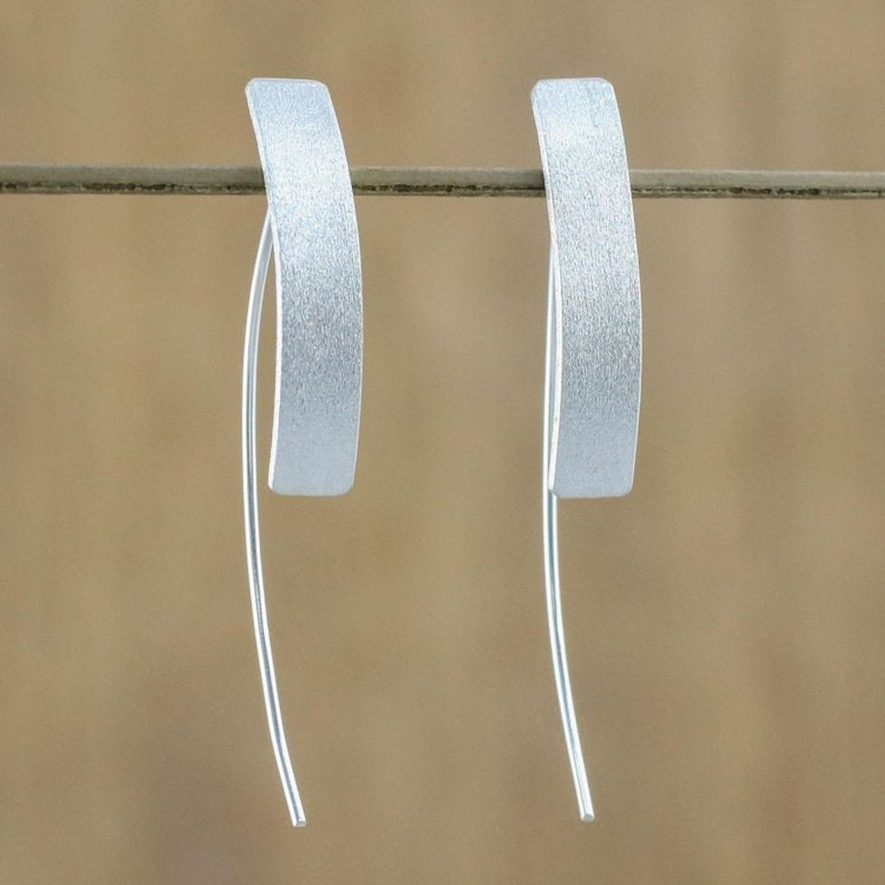 Sterling Silver Rectangular Drop Earrings from Thailand 'Modern Flair' Item ID: 2669926203