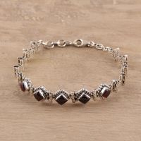 Sterling Silver Red Garnet Openwork Link Bracelet 'Radiant Red Romance' Item ID: 2671791195