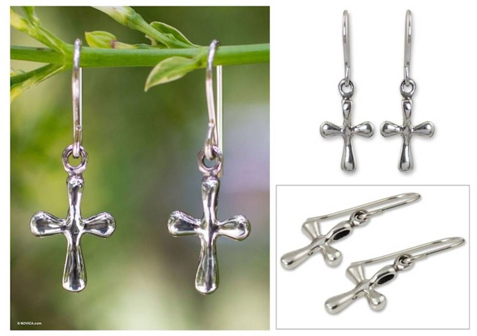Sterling Silver Religious Dangle Earrings 'Faithful Cross' Item ID: 2671641243
