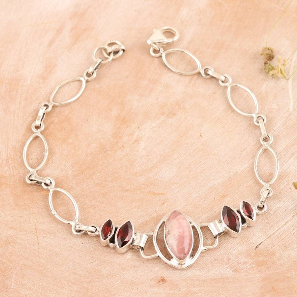 Sterling Silver Rhodochrosite and Garnet Pendant Bracelet 'Romantic Fusion' Item ID: 2671786576