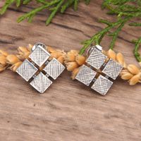 Sterling Silver Rhombus Button Earrings with Textured Finish 'Rhombus Splendor' Item ID: 2671821003
