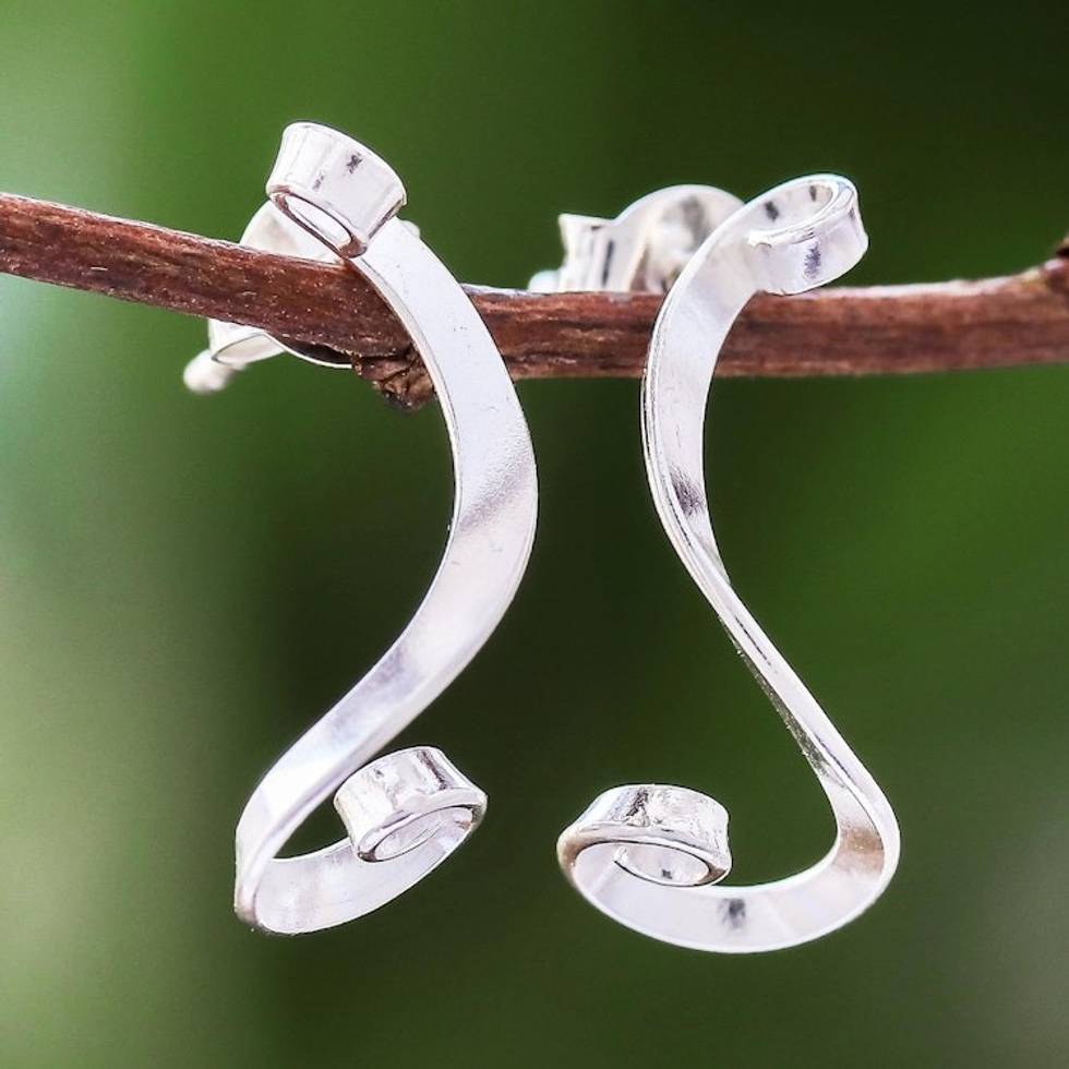 Sterling Silver Ribbon Drop Earrings from Thailand 'Coiling Ribbons' Item ID: 2671641416