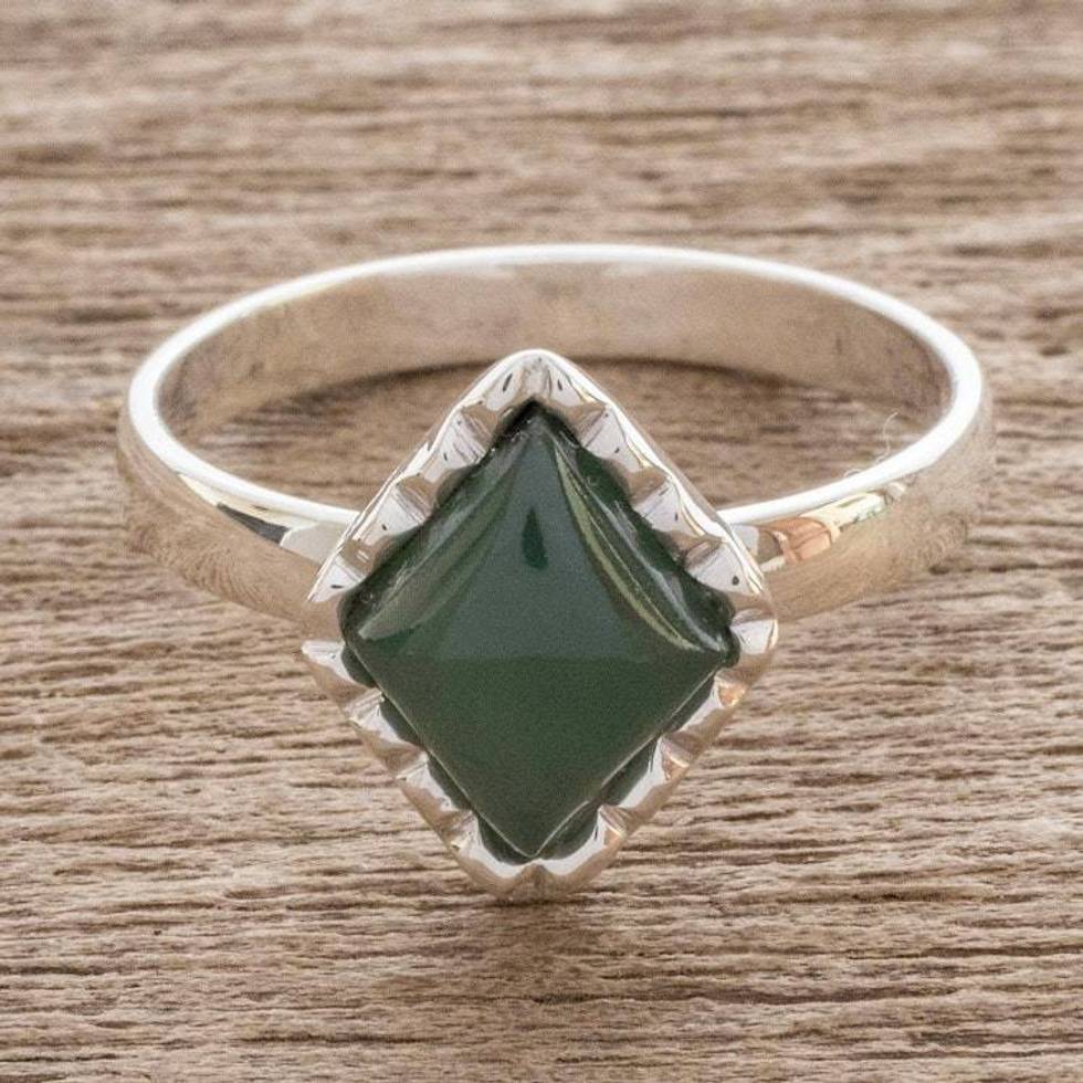 Sterling Silver Ring with a Princess Green Jade Diamond 'Princess Green Diamond' Item ID: 2676659781