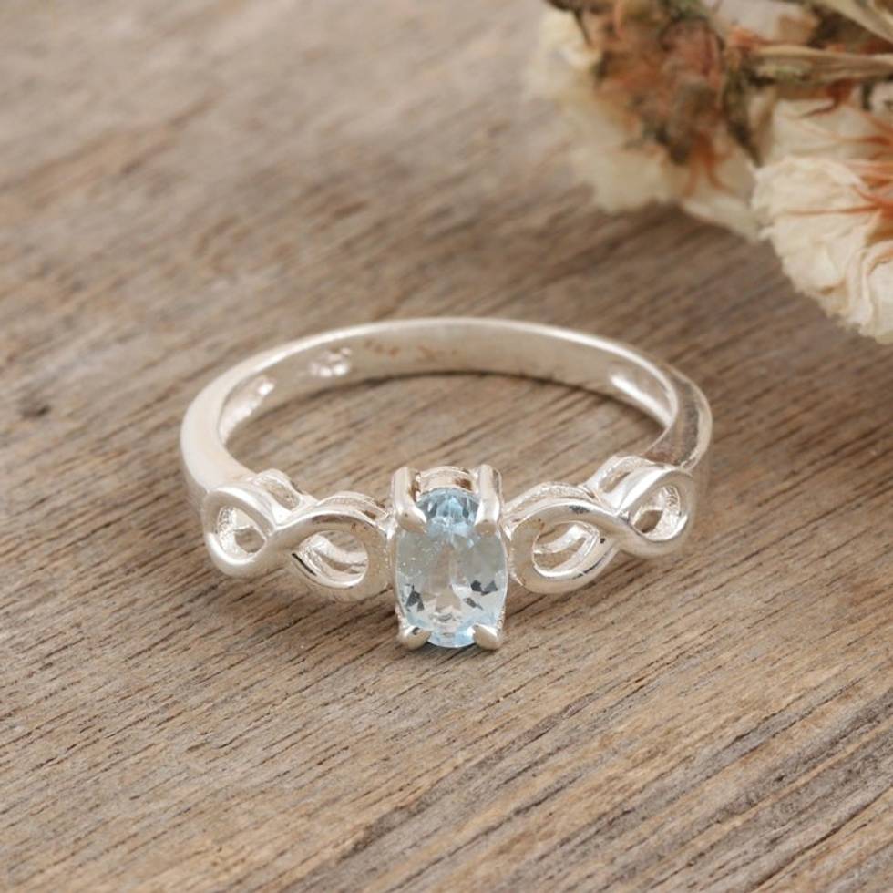 Sterling Silver Ring with Blue Topaz Stone Infinity Motif 'Sky Infinity' Item ID: 2671787138