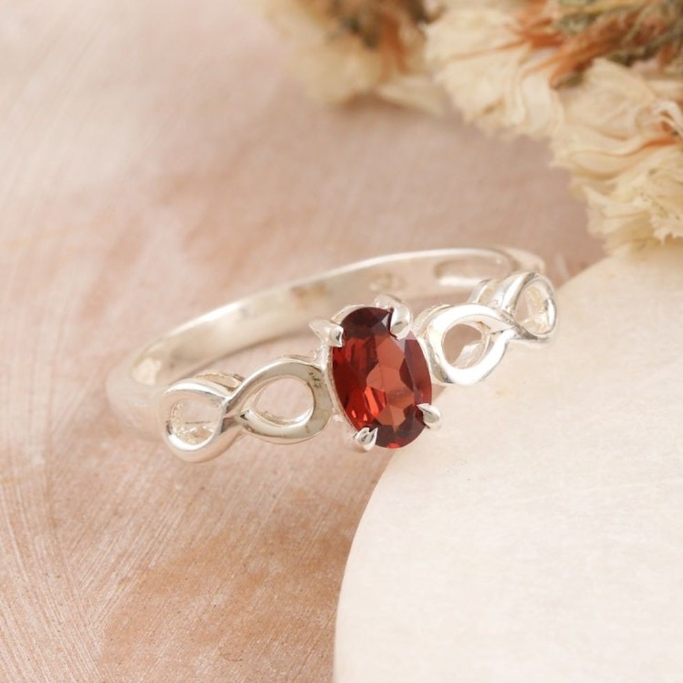 Sterling Silver Ring with Garnet Stone and Infinity Motif 'Infinity in Red' Item ID: 2669924852