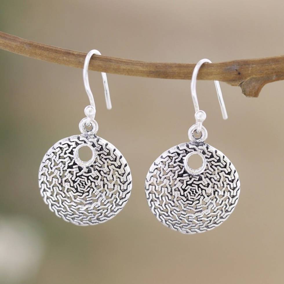Sterling Silver Round Dangle Earrings from India 'Magical Discs' Item ID: 2671789071