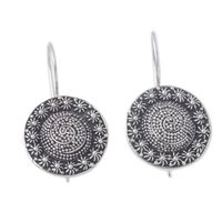 Sterling Silver Round Drop Earrings Crafted in Bali 'Alluring Sparkles' Item ID: 2676659449