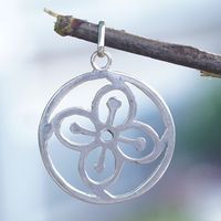 Sterling Silver Round Pendant with Flower Icon from Ghana 'Abundance Core' Item ID: 2671805493