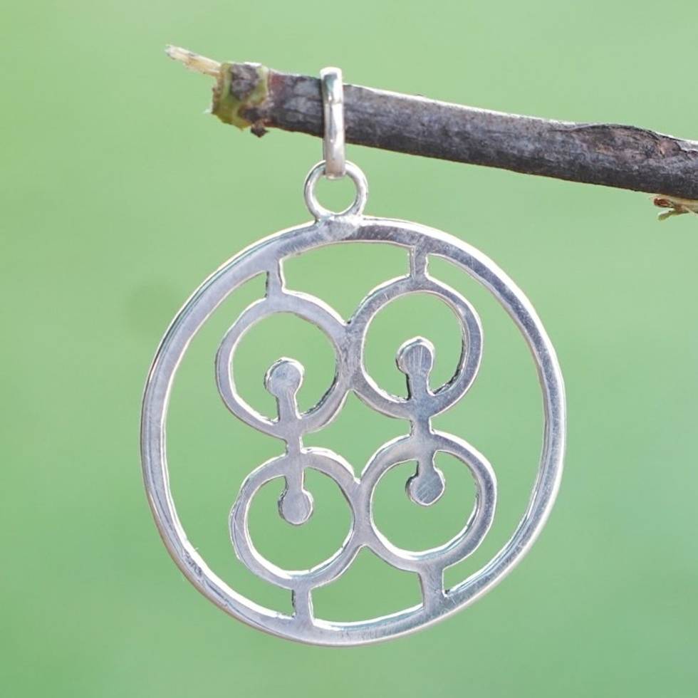 Sterling Silver Round Pendant with Modern Icon from Ghana 'Commitment Core' Item ID: 2671816258