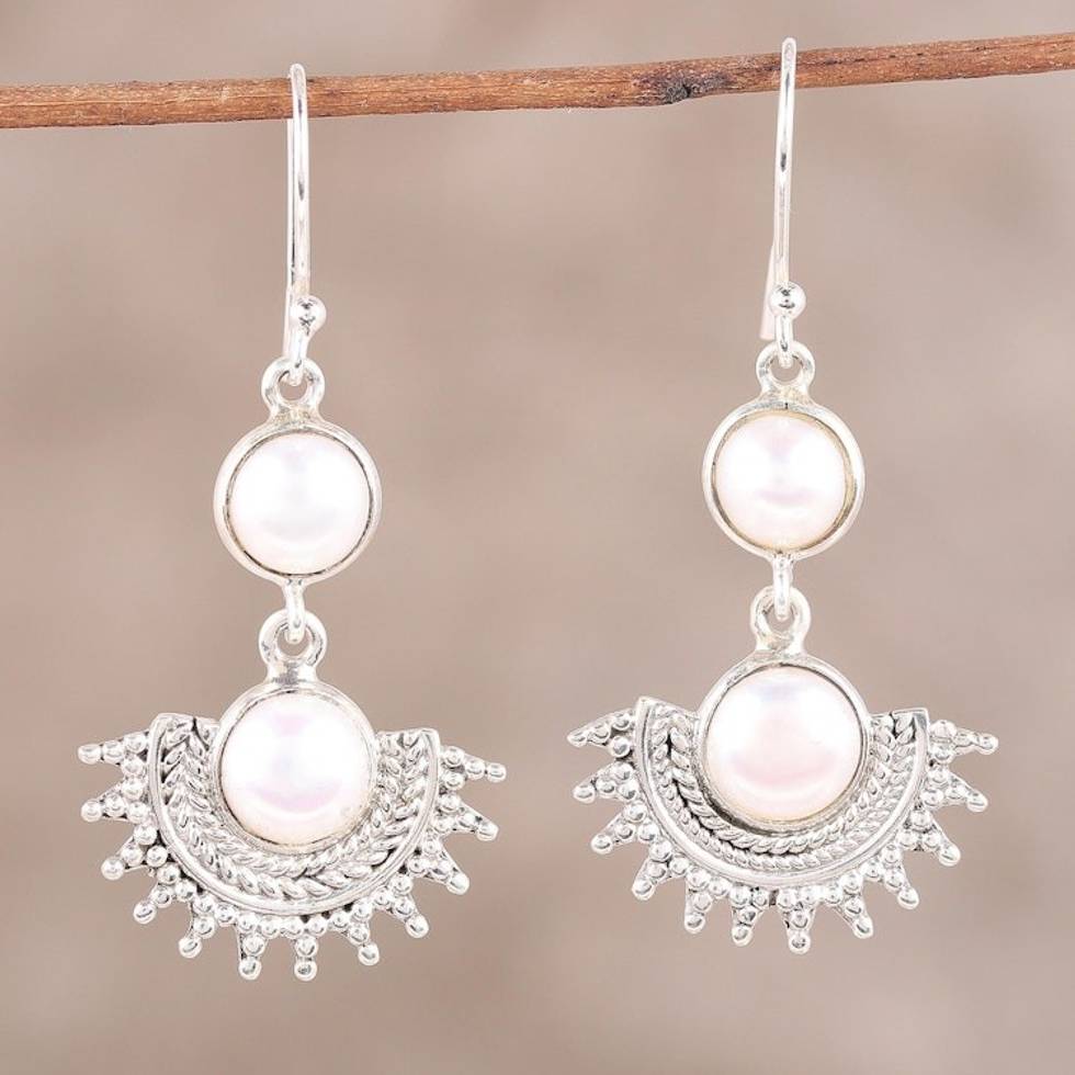 Sterling Silver Round White Cultured Pearl Dangle Earrings 'Sweetly Radiant' Item ID: 2671791505