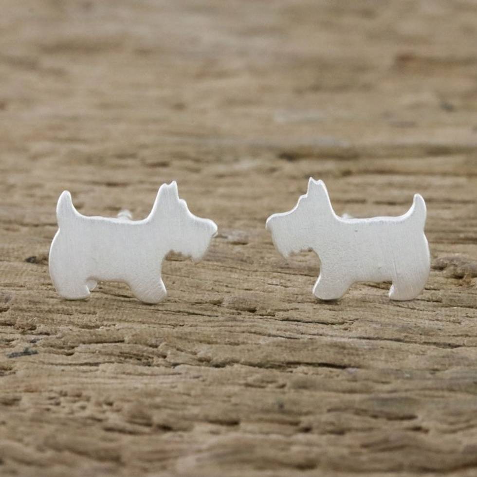 Sterling Silver Scottish Terrier Stud Earrings from Thailand 'Scottish Terrier' Item ID: 2669926271