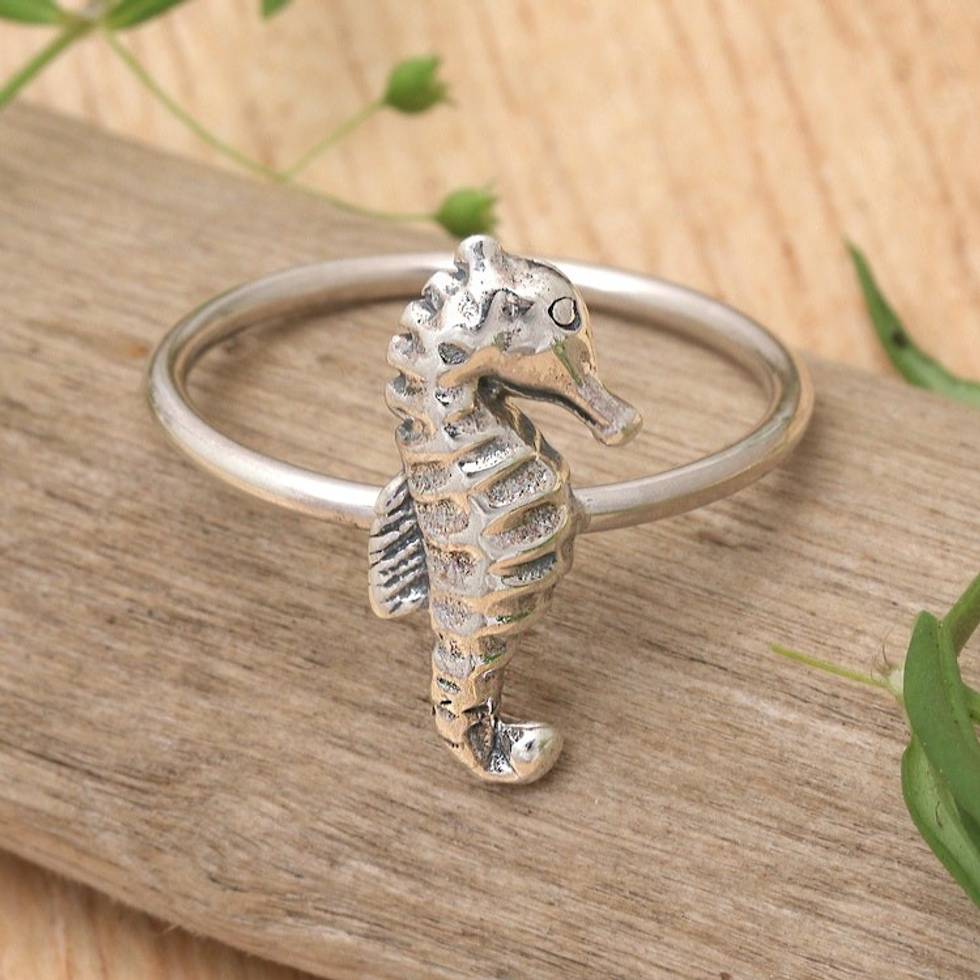 Sterling Silver Seahorse-Themed Cocktail Ring 'Seahorse Origin' Item ID: 2671765160