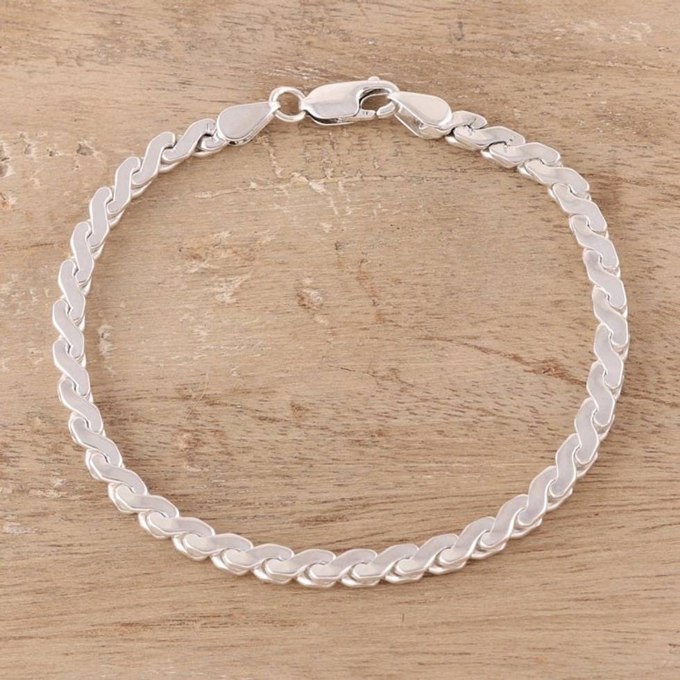 Sterling Silver Serpentine Chain Bracelet from India 'Serpentine Gleam' Item ID: 2671792743
