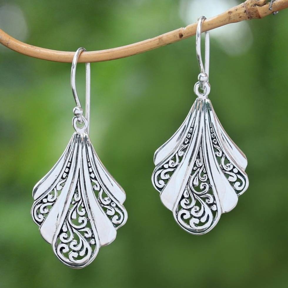 Sterling Silver Shell Dangle Earrings from Bali 'Vine Shells' Item ID: 2671736576