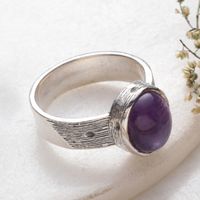 Sterling Silver Single Stone Ring with Amethyst Cabochon 'Violet Elegance' Item ID: 2671781860