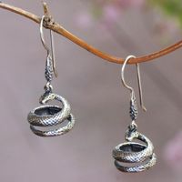 Sterling Silver Snake Dangle Earrings Crafted in Bali 'Protective Cobras' Item ID: 2671737070