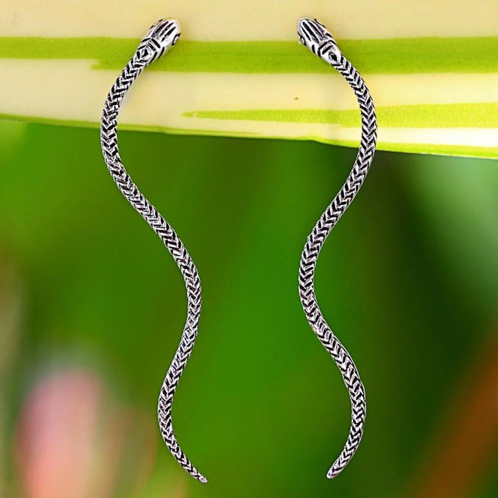 Sterling Silver Snake Drop Earrings from Thailand 'Winding Snakes' Item ID: 2669927258