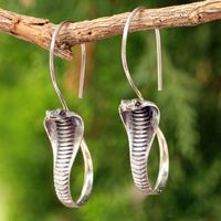 Sterling Silver Snake Earrings 'Cobra Guardian' Item ID: 2669930235
