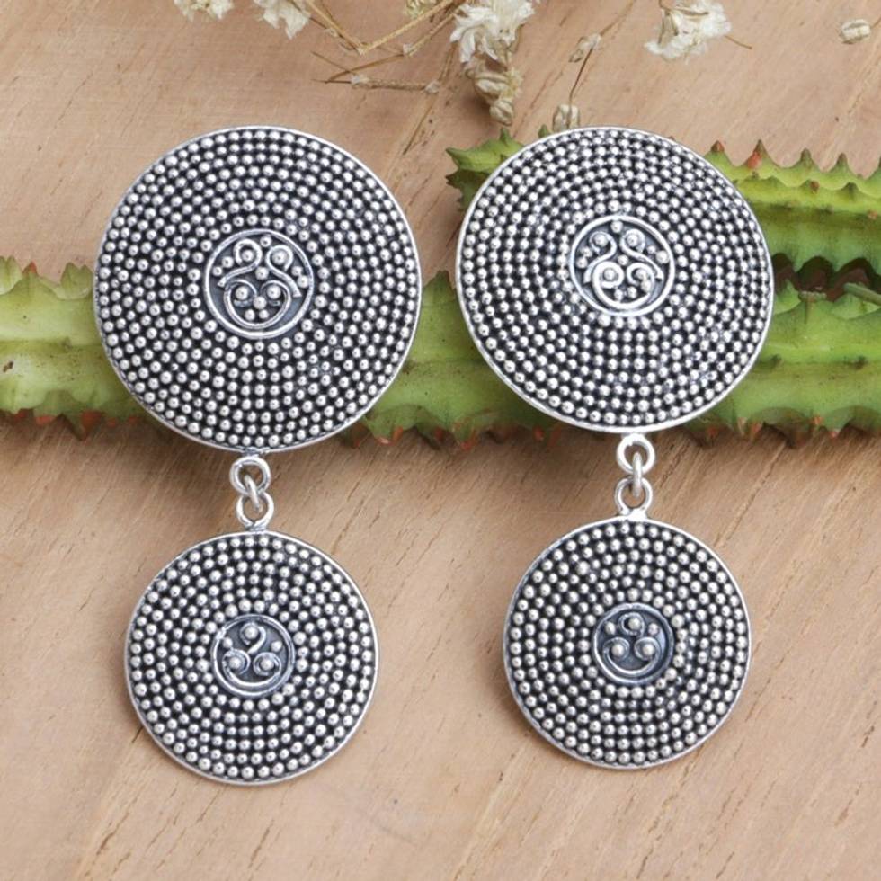 Sterling Silver Speckled Dangle Earrings from Bali 'Speckled Shield' Item ID: 2671763337