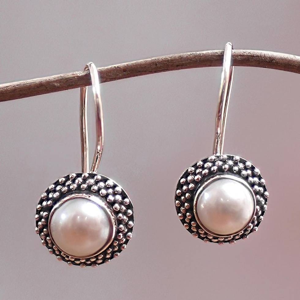 Sterling Silver Speckled Drop Earrings with Grey Pearls 'Pearly Specks' Item ID: 2671747919