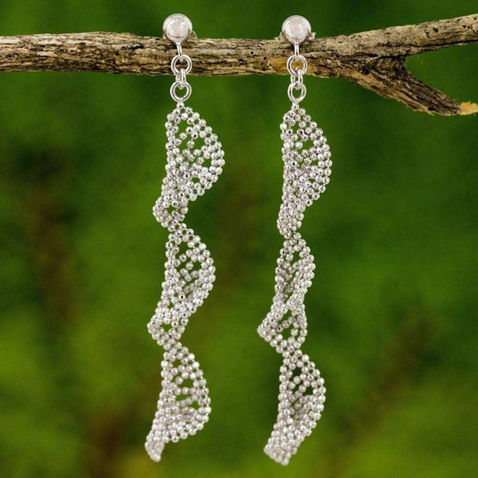 Sterling Silver Spiral Dangle Earrings from Thailand 'Spiral Chandeliers' Item ID: 2671802391