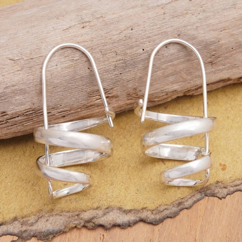 Sterling Silver Spiral Drop Earrings Crafted in Bali 'Spirals of Life' Item ID: 2669919812